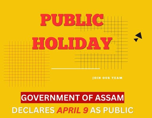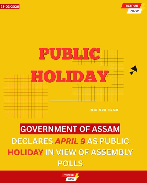 The Assam government has announced April 9, 2026 (Thursday), as a public holiday across the state for the upcoming Legislative Assembly elections. As per the notification from the General Administration Department, issued under the N.I. Act, 1881 and following Election Commission instructions, all government and private offices, educational institutions, banks, tea gardens, industries, and local…