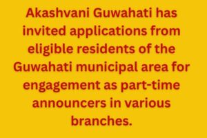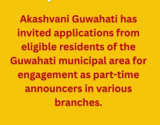Guwahati: Akashvani Guwahati has invited applications from eligible residents of the Guwahati municipal area for engagement as part-time announcers in various branches. The branches include General Announcement (Assamese), Nepali, Karbi, Bodo, and Tea Tribe programme sections. Applicants must be at least graduates, with an age limit between 20 and 50 years as of the last…